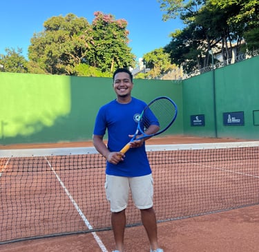 Com anos de experiência prática no ensino do tênis, é responsável por formar alunos desde a base até níveis mais avançados, sempre com foco em técnica, disciplina e evolução contínua.