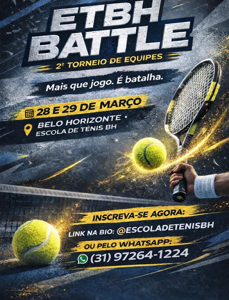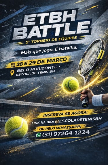 O ETBH BATTLE é o torneio oficial de equipes da Escola de Tênis BH. Dois dias de jogos, espírito de equipe e a experiência real de competição.